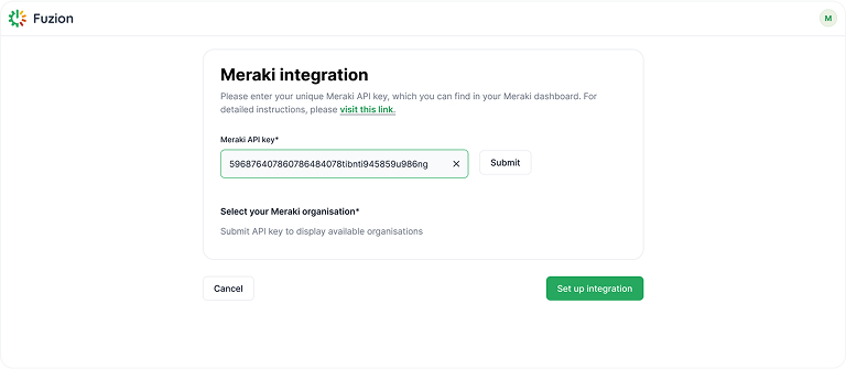 e. Verify that Meraki is successfully connected to your Fuzion Organization